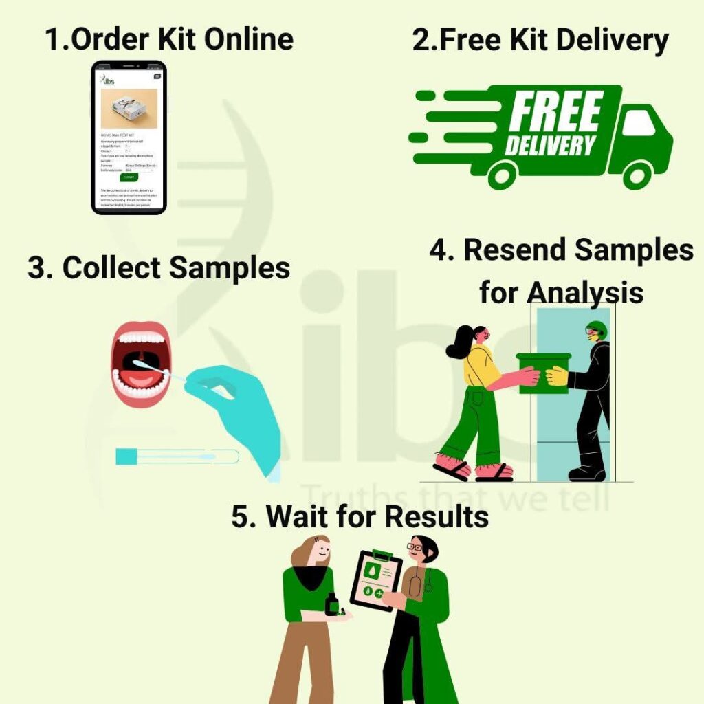 You may order for a sample colection kit. We will deliver it to you. All you need to do is to collect your mouth swab samples as per the instruction lefalet and send the samples to us. You can click the button below to fill in the form for your kit.